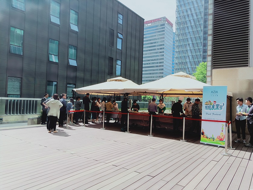 水果节活动于2018年4月20日下午13:30-15:30在大厦西面平台举行。我们准备了12种不同种类的水果供租户享用。本次活动非常成功。